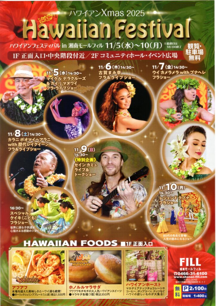 11月5日(水)~10日(月)恒例のHawaiiann Festivalが湘南モールフィルにて行われます。皆さんの協力お願いいたします。